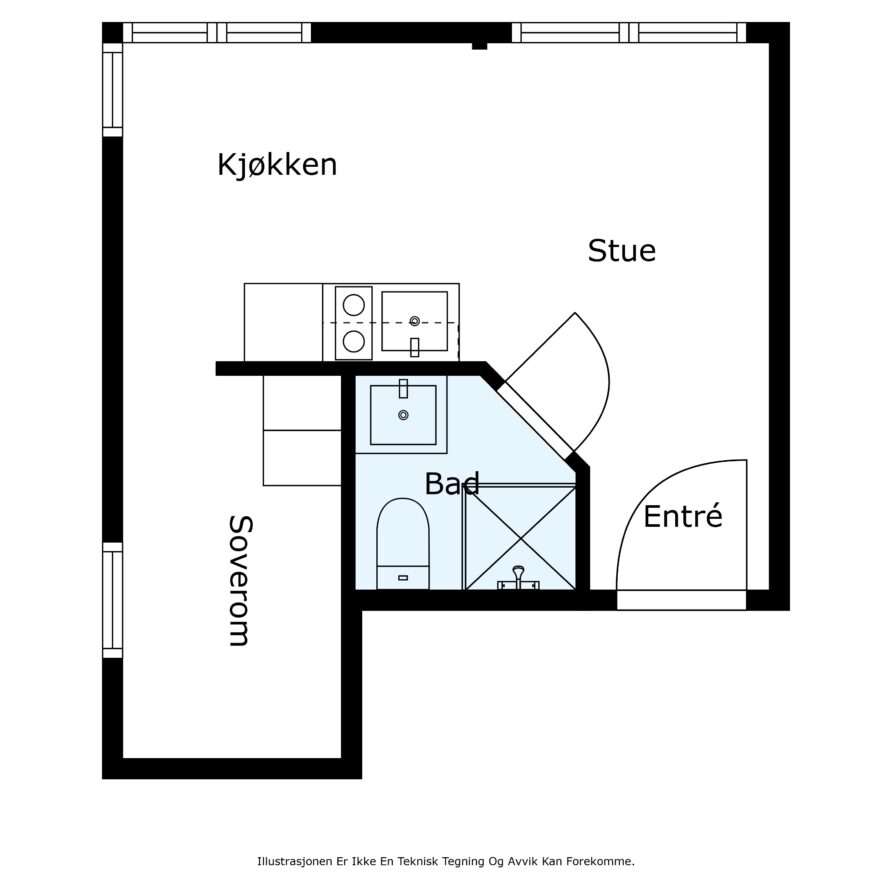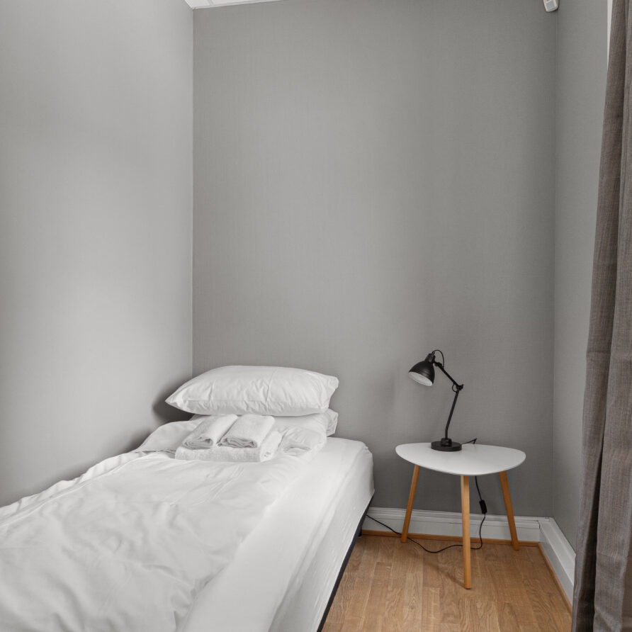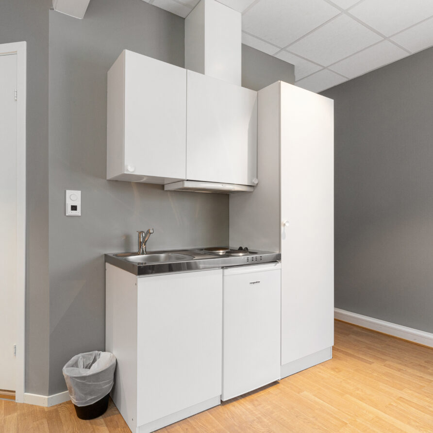 Hybelen er ca 10 kwm. Du får også tilgang til et felles vaskerom i bygget.